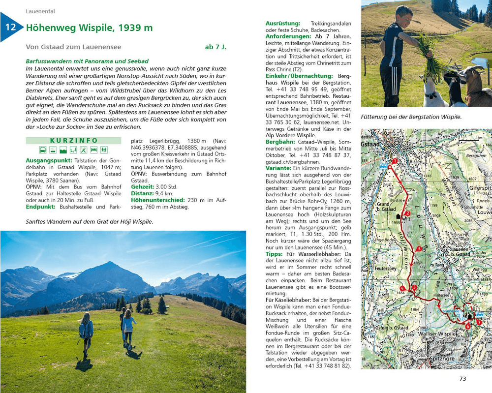 Jede Tour ist sorgfältig beschrieben und enthält Altersempfehlungen, Schwierigkeitsgrade sowie Gehzeiten. Zudem gibt es Informationen zur Anreise mit öffentlichen Verkehrsmitteln, Übernachtungsmöglichkeiten und zahlreichen Varianten. Detaillierte Wegbeschreibungen, aussagekräftige Höhenprofile und Karten mit Routeneinträgen machen das Wandern zum Kinderspiel. Geprüfte GPS-Tracks zum Download erleichtern die Navigation.