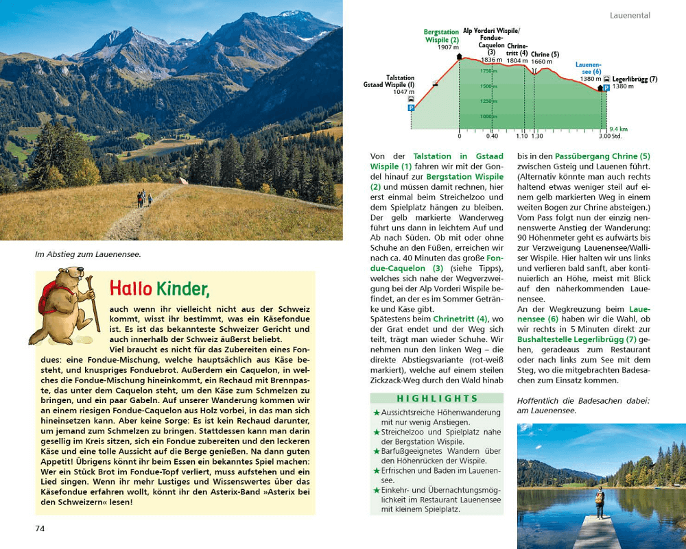 Das Berner Oberland ist ein riesiges Wanderparadies mit herrlichen Seen wie dem Thuner- und dem Brienzersee, grünen Alplandschaften und spektakulären Tälern. Vorgestellt werden kurze, leichte Entdeckungstouren für die ganz Kleinen, Wanderungen zu Bergseen (Badevergnügen inklusive!), einfache Klettersteige und aufregende Hüttenübernachtungstouren für junge Bergsteiger.