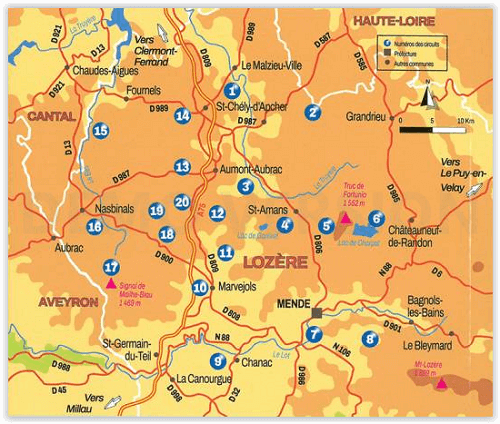 Franse omschrijving: 20 circuits de randonnée pour découvrir les hauts plateaux de l’Aubrac, au cœur du département de la Lozère, dont un circuit en ville pour visiter le bourg de Marjevols. Compris entre 620 et 1 550 m d’altitude, les circuits se situent entre Saint-Chély-d’Apcher au nord, Mende au sud, Nasbinals à l’ouest et le lac de Charpal à l’est.