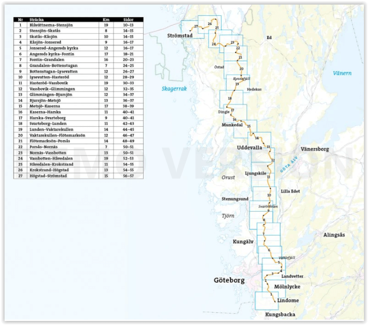 - Lange afstand wandelroutes: Bohusleden, Göteborg > Strömstad (350 km) 27 Etappes