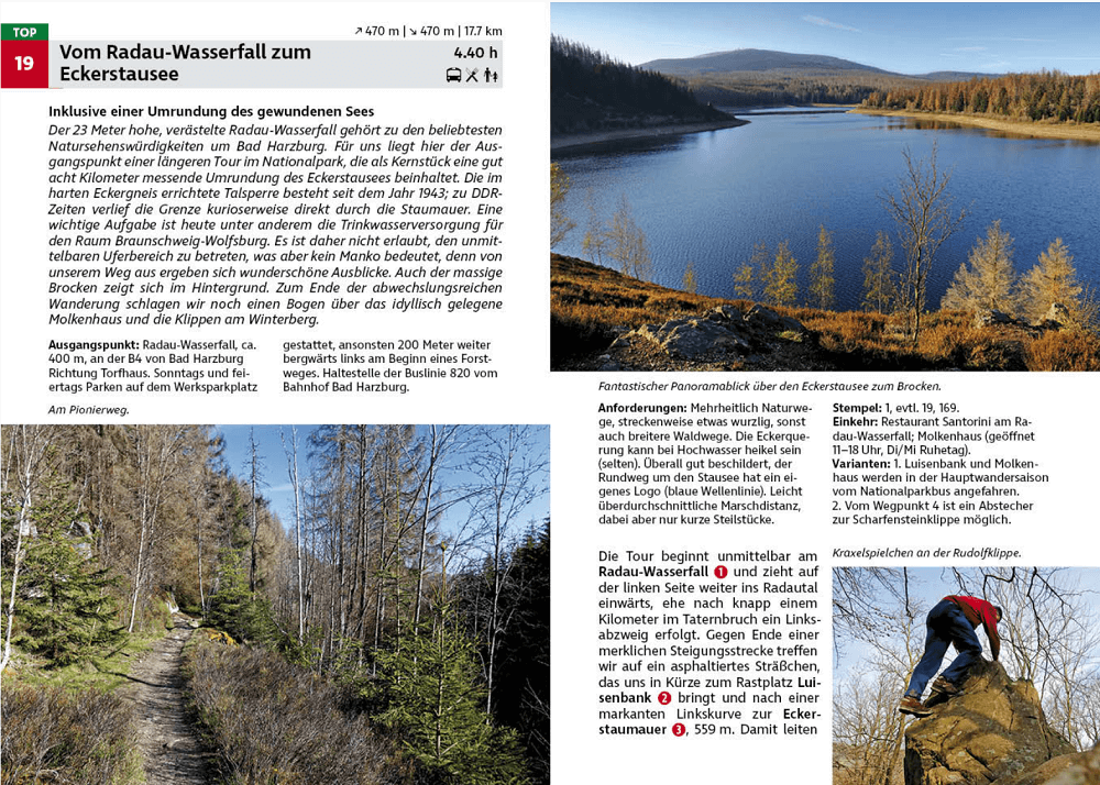 Auf den berühmten Brocken führen viele Wege, wovon die schönsten in diesem Wanderführer vorgestellt werden. Natürlich hat das Harzer Mittelgebirge noch viel mehr zu bieten: Mystische Felsklippen, malerische Harzdörfer und die zum UNESCO Weltkulturerbe gehörende »Oberharzer Wasserwirtschaft« mit ihren Wassergräben und Teichen sind eine herrliche Umgebung für ausgedehnte Wanderungen. Auf reizvollen Waldpfaden lassen sich die zahlreichen Naturschönheiten genießen. Die Tourenauswahl umfasst kurze bis tagesfüllende Wanderungen. Mit Hexenstieg, Kaiserweg und Selketalstieg sind sogar einige Mehrtagestouren etappenweise dabei. Und für alle Stempeljäger der Harzer Wandernadel: Viele Wanderungen führen an den Stempelstellen im Harz vorbei.