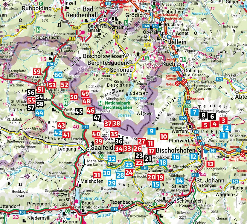 Orte, Berge & Seen: Bischofshofen, Hochkönig, Großer Hundstod, Riemannhaus, Saalfelden, Birnhorn, Werfen, Dienten, St. Johann im Pongau, Lofer, Maria Alm, Großes Ochsenhorn, Raucheck, Arthurhaus, Werfener Hütte, Eisriesenwelt, Werfenweng, Mühlbach, Weißbach, Passauer Hütte, Maria Kirchental, St. Martin bei Lofer, ostpreußenhütte.