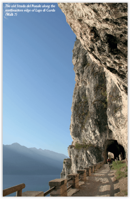 Must See: Marvellous historic paved pathways such as Strada Regia on Lago di Como and the Strada Borromeo on Lago Maggiore. Memorable trips on ferries and rides on cable-cars (Mottarone on Lago Maggiore, Monte Baldo on Lago di Garda), gorgeous alpine and Mediterranean wildflowers. Breathtaking panoramic mountains: Monte Baldo (Lago di Garda), Mottarone (Lago Maggiore) and Monte San Primo (Lago di Como) stand out. Seasons:Spring, early summer and autumn are the ideal seasons, as the majority of the walks are low to medium altitude. However, midsummer is perfect for the higher alpine-type routes.