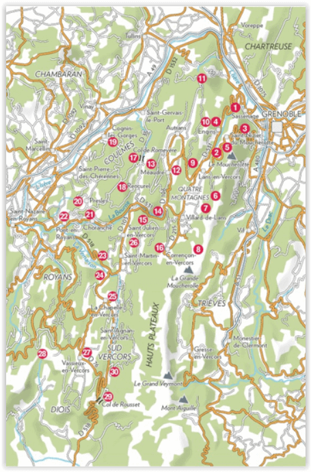 30 itinéraires sur ce magnifique territoire entre Isère et Drôme pour découvrir gorges, canyon, rivières, cascades, plateaux, cols, falaises, sommets et villages. Le Vercors est un univers riche et varié sur lequel veille un parc naturel régional. Le randonneur sera souvent émerveillé par les points de vue, la beauté des paysages, la qualité des sentiers et la richesse du patrimoine naturel et bâti. Chacun trouvera des itinéraires adaptés à son goût et à ses possibilités.