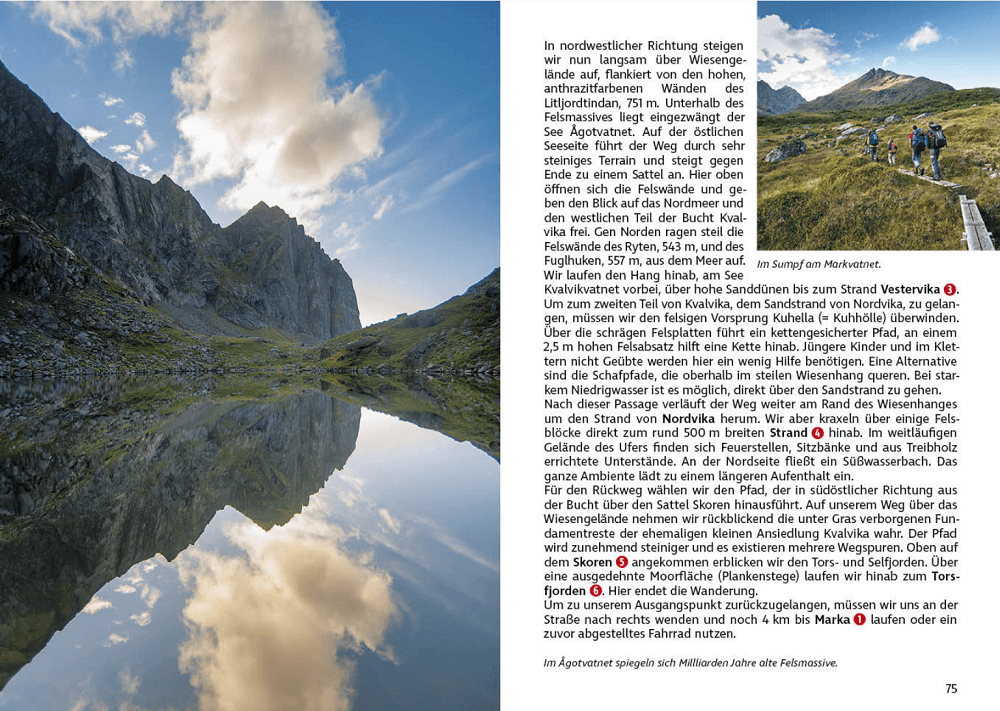 Das Tourenangebot erstreckt sich von familientauglichen Küstenspaziergängen zwischen malerischen Dörfern bis hin zu anspruchsvollen Bergbesteigungen für Nervenstarke – Kletterpassagen und schwindelerregende Tiefblicke von den schmalen Graten inklusive. Sensationelle Ausblicke bieten sich aber auch von den gemütlicheren Wegen, das tiefblaue Nordmeer und die steil aufragenden Berge bilden für fast alle Wanderungen die perfekte Kulisse.