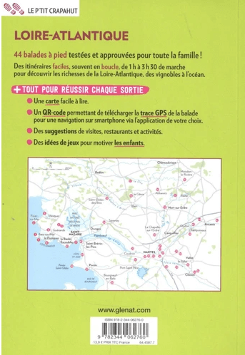 Une sélection de 44 balades dont 5 nouveaux itinéraires pour cette nouvelle édition du P'tit Crapahut en Loire-Atlantique. Des balades pour découvrir les milieux naturels plages marais salants vignes... ou le patrimoine bâti châteaux de la Loire à proximité des grandes villes Nantes, Saint-Nazaire, Pornic Guérande et proches les unes des autres pour ne pas perdre de temps dans les transports.