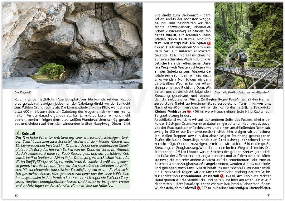 Der »Malerweg« zählt zu den schönsten Rundwanderwegen Deutschlands. Kein Wunder: auf dem »König der Wanderwege« durch die Sächsische Schweiz folgt ein Highlight nach dem anderen. Entlang aussichtsreicher Panoramawege besteigt man exzentrische Tafelberge und steinerne Burgen. In verwegenen Schluchten entdeckt man zarte Wasserfälle und sandige Höhlen. Und zwischendrin fließt erhaben die Elbe, so, als ob die Zeit stehenbleibt.
