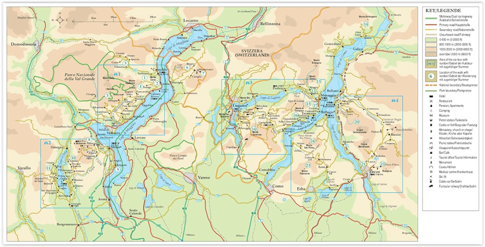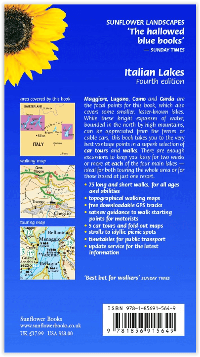 Area covered: While the term ‘Italian Lakes’ generally refers to Lake Maggiore, Lake Lugano, Lake Como and Lake Garda, there are many other, smaller lakes, some of which are included in this guide book.