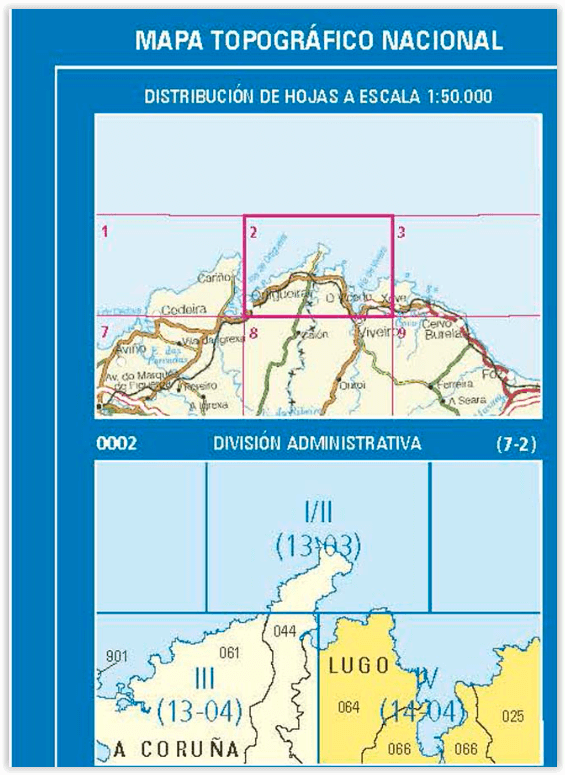 Wandelkaarten Lugo (Provincie) Galicië Spanje en Galicië, Spanje van Centro Nacional de Informacion Geografica. Ideaal voor tochten in Spanje.