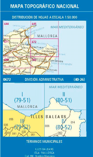 Wandelkaarten Colònia de Sant Pere (gemeente) Mallorca, Balearen, Mallorca (provincie) Balearen, Spanje, Mallorca, Balearen Spanje en Balearen, Spanje van Centro Nacional de Informacion Geografica. Ideaal voor tochten in Spanje.