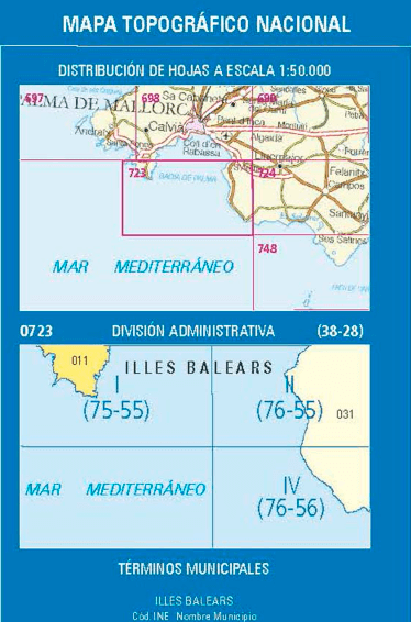 Wandelkaarten Illa del Toro y Cap de Cala Figuera (gemeente) Mallorca Spanje en Mallorca (provincie) Balearen, Spanje van Centro Nacional de Informacion Geografica. Ideaal voor tochten in Spanje.