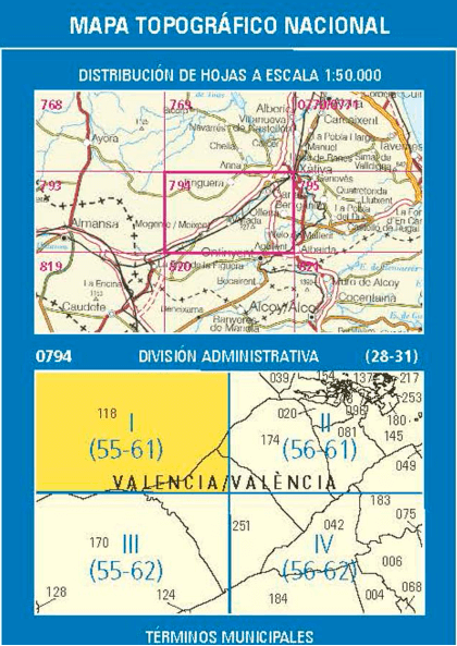 - Wandelkaart 000795.4 Villalonga, Valencia Valencia, Spanje - CNIG