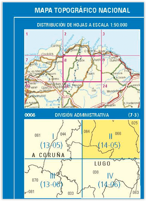 Wandelkaarten Lugo (Provincie) Galicië Spanje en Galicië, Spanje van Centro Nacional de Informacion Geografica. Ideaal voor tochten in Spanje.
