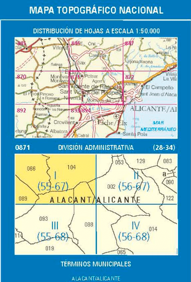- Wandelkaart 000872.3 Alicante, Alicante, Valencia, Spanje - CNIG