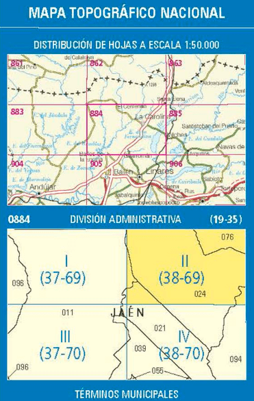 Wandelkaarten La Carolina (gemeente) Jaén, Andalusië Spanje en Jaén (provincie) Andalusië, Spanje van Centro Nacional de Informacion Geografica. Ideaal voor tochten in Spanje.