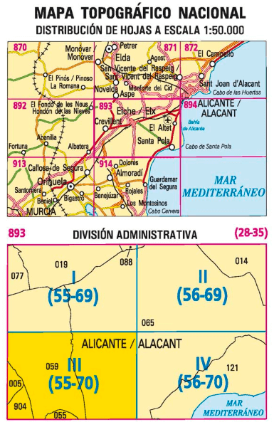 - Wandelkaart 000893.3 Crevillent, Alicante, Valencia Spanje - CNIG