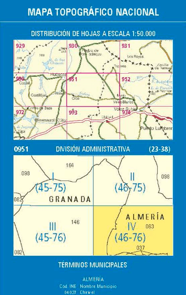 Wandelkaarten Casablanca (gemeente) Almeria, Andalusië Spanje en Almeria (Provincie) Andalusië Spanje van Centro Nacional de Informacion Geografica. Ideaal voor tochten in Spanje.