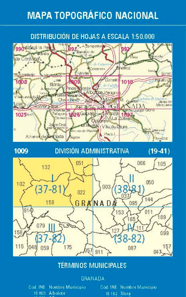 Wandelkaarten Pinos Puente (gemeente) Granada, Andalusië Spanje en Granada (Provincie) Andalusië Spanje van Centro Nacional de Informacion Geografica. Ideaal voor tochten in Spanje.