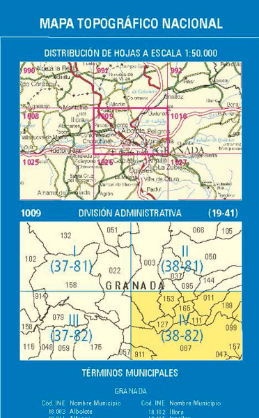 Wandelkaarten Granada Norte (gemeente) Granada, Andalusië Spanje en Granada (Provincie) Andalusië Spanje van Centro Nacional de Informacion Geografica. Ideaal voor tochten in Spanje.