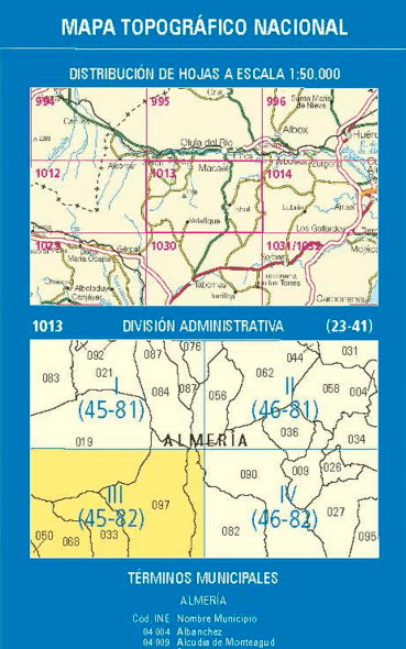 Wandelkaarten Velefique (gemeente) Almeria, Andalusië Spanje en Almeria (Provincie) Andalusië Spanje van Centro Nacional de Informacion Geografica. Ideaal voor tochten in Spanje.