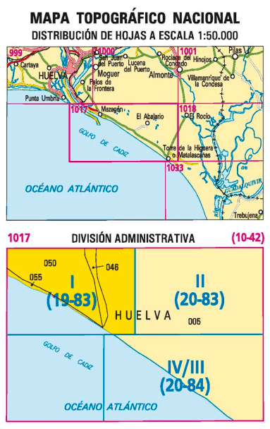 Wandelkaarten Mazagón (gemeente) Huelva, Andalusië Spanje en Huelva (gemeente) Huelva, Andalusië Spanje van Centro Nacional de Informacion Geografica. Ideaal voor tochten in Spanje.