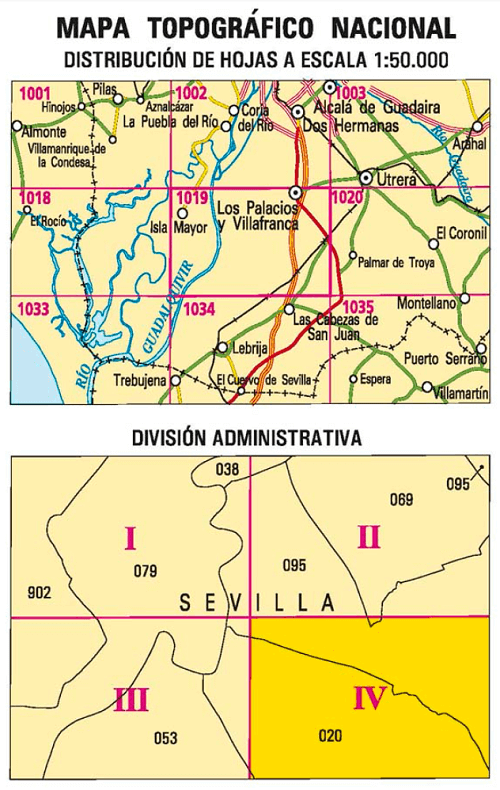 Wandelkaarten Trajano (gemeente) Sevilla, Andalusië Spanje en Sevilla (provincie) Andalusië Spanje van Centro Nacional de Informacion Geografica. Ideaal voor tochten in Spanje.