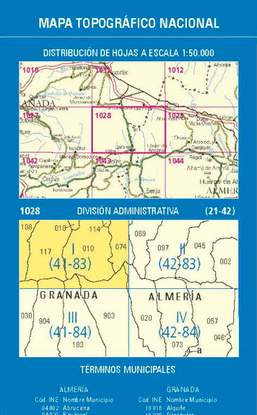 Wandelkaarten Aldeire (gemeente) Granada, Andalusië Spanje en Granada (Provincie) Andalusië Spanje van Centro Nacional de Informacion Geografica. Ideaal voor tochten in Spanje.