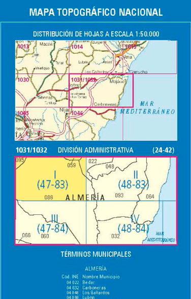 Wandelkaarten Sorbas (gemeente) Almeria, Andalusië Spanje en Almeria (Provincie) Andalusië Spanje van Centro Nacional de Informacion Geografica. Ideaal voor tochten in Spanje.