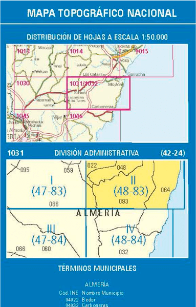 Wandelkaarten Turre (gemeente) Almeria, Andalusië Spanje en Almeria (Provincie) Andalusië Spanje van Centro Nacional de Informacion Geografica. Ideaal voor tochten in Spanje.