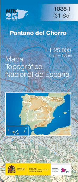 Wandelkaarten Pantano del Chorro (meer stuwdam) Malaga, Andalusië Spanje en Malaga (Provincie) Andalusië Spanje van Centro Nacional de Informacion Geografica. Ideaal voor tochten in Spanje.