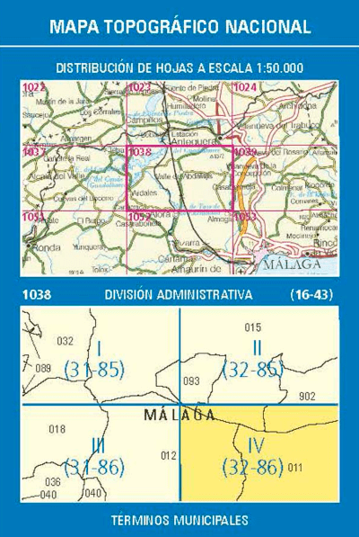 Wandelkaarten Casablanquilla (gemeente) Malaga, Andalusië Spanje en Malaga (Provincie) Andalusië Spanje van Centro Nacional de Informacion Geografica. Ideaal voor tochten in Spanje.