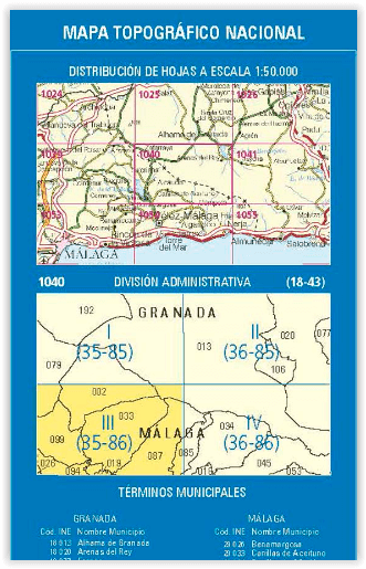 Wandelkaarten Canillas de Aceituno (gemeente) Malaga, Andalusië Spanje en Malaga (Provincie) Andalusië Spanje van Centro Nacional de Informacion Geografica. Ideaal voor tochten in Spanje.