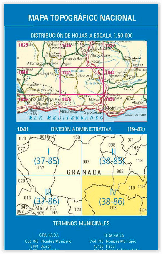 Wandelkaarten Los Guájares (gemeente) Granada, Andalusië Spanje en Granada (Provincie) Andalusië Spanje van Centro Nacional de Informacion Geografica. Ideaal voor tochten in Spanje.
