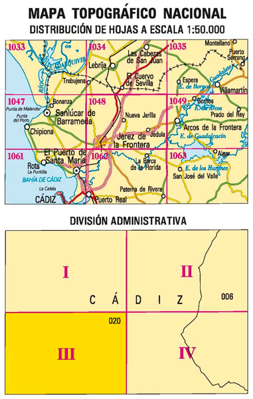 Wandelkaarten Jerez de la Frontera (gemeente) Cadiz, Andalusië Spanje en Cadiz (provincie) Andalusië Spanje van Centro Nacional de Informacion Geografica. Ideaal voor tochten in Spanje.