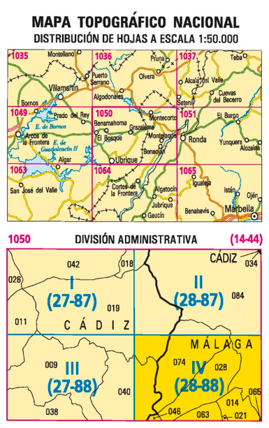 Wandelkaarten Benaoján (gemeente) Malaga, Andalusië Spanje en Malaga (Provincie) Andalusië Spanje van Centro Nacional de Informacion Geografica. Ideaal voor tochten in Spanje.