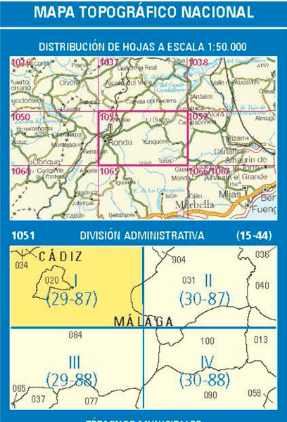 Wandelkaarten Arriate (gemeente) Malaga, Andalusië Spanje en Malaga (Provincie) Andalusië Spanje van Centro Nacional de Informacion Geografica. Ideaal voor tochten in Spanje.