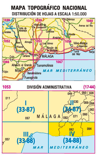 Wandelkaarten Rincón de la Victoria (gemeente) Malaga, Andalusië Spanje en Malaga (Provincie) Andalusië Spanje van Centro Nacional de Informacion Geografica. Ideaal voor tochten in Spanje.