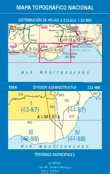 Wandelkaarten El Ejido (gemeente) Almeria, Andalusië Spanje en Almeria (Provincie) Andalusië Spanje van Centro Nacional de Informacion Geografica. Ideaal voor tochten in Spanje.
