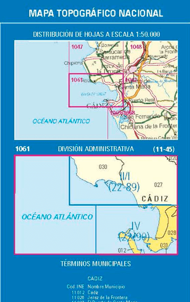 Wandelkaarten Cádiz (gemeente) Cadiz, Andalusië Spanje, Cadiz (provincie) Andalusië Spanje en Costa de la Luz, Spanje van Centro Nacional de Informacion Geografica. Ideaal voor tochten in Spanje.