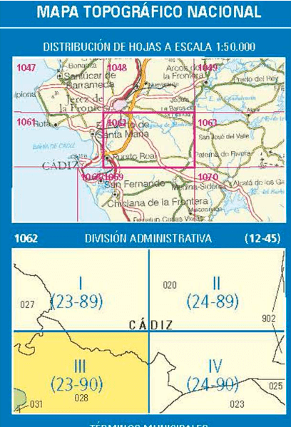 Wandelkaarten Puerto Real (gemeente) Cadiz, Andalusië Spanje en Cadiz (provincie) Andalusië Spanje van Centro Nacional de Informacion Geografica. Ideaal voor tochten in Spanje.