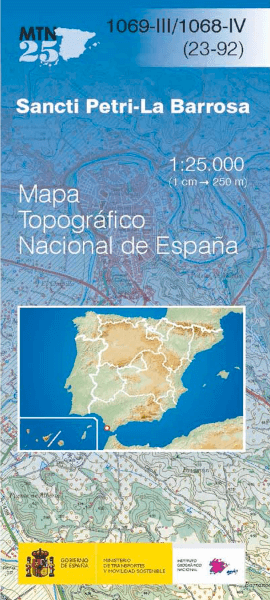 Sancti Petri-La Barrosa, in de provincie Cadiz, regio Andalusië Spanje Productomschrijving: De Topografische Wandelkaarten, met reeks MTN25 van CNIG! Omvat: Sancti Petri-La Barrosa, in d...