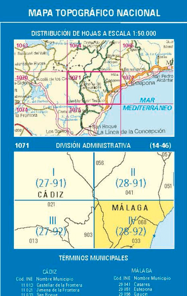 Wandelkaarten Manilva (gemeente) Malaga, Andalusië Spanje en Malaga (Provincie) Andalusië Spanje van Centro Nacional de Informacion Geografica. Ideaal voor tochten in Spanje.