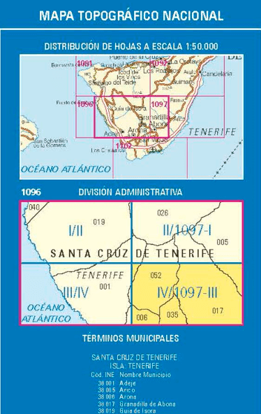 Wandelkaarten Granadilla de Abona (eiland) TENERIFE, Canarische eilanden Spanje en Canarische Eilanden, Spanje van Centro Nacional de Informacion Geografica. Ideaal voor tochten in Spanje.