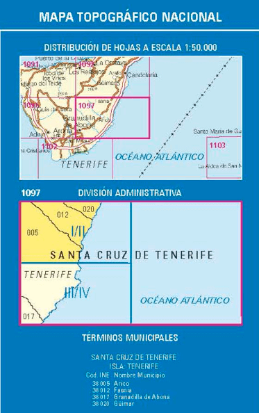 Wandelkaarten Fasnia (eiland) TENERIFE, Canarische eilanden Spanje en Canarische Eilanden, Spanje van Centro Nacional de Informacion Geografica. Ideaal voor tochten in Spanje.