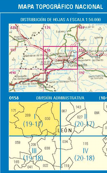 Wandelkaarten Vega de Valcarce (gemeente) Léon, Castillië y Léon en Leon (provincie) Castillië y Léon van Centro Nacional de Informacion Geografica. Ideaal voor tochten in Spanje.