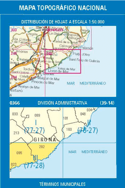 Wandelkaarten Lloret de Mar (gemeente) Girona, Catalonië en Girona (gemeente) Girona, Catalonië van Centro Nacional de Informacion Geografica. Ideaal voor tochten in Spanje.