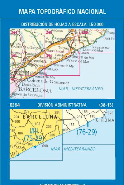- Wandelkaart 00394.1/3 Canet de Mar, Barcelona, Catalonië - CNIG