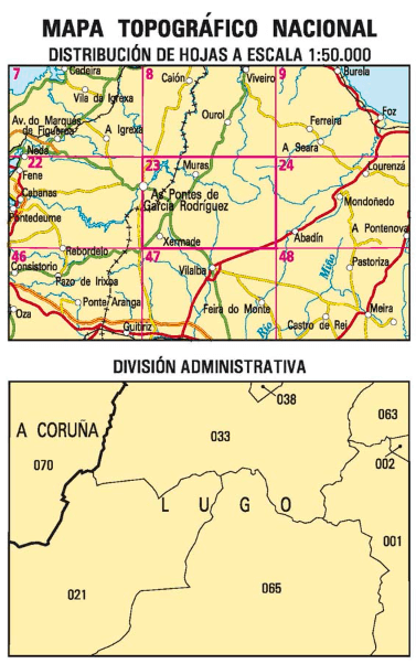 Wandelkaarten As Pontes de García Rodriguez (gemeente) A Coruna, Galicië Spanje en A Coruña (provincie) Galicië Spanje van Centro Nacional de Informacion Geografica. Ideaal voor tochten in Spanje.