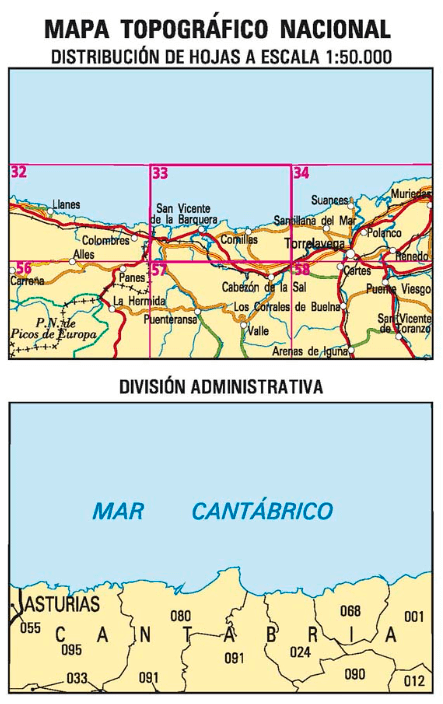 Wandelkaarten Comillas (gemeente) Cantabrië, Cantabrië Spanje en Cantabrië (provincie) Spanje van Centro Nacional de Informacion Geografica. Ideaal voor tochten in Spanje.