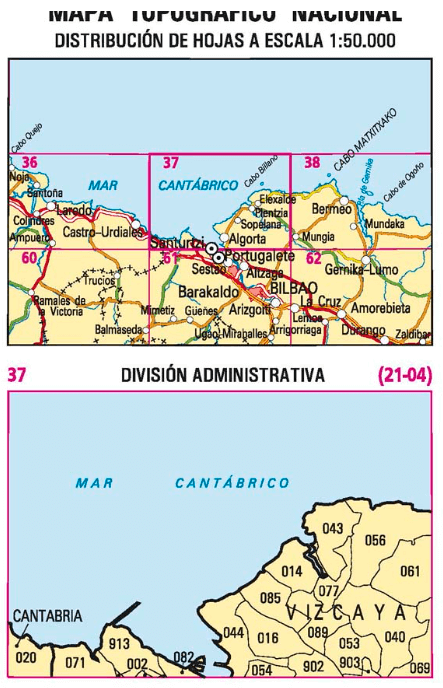 Wandelkaarten Algorta (wijk) Biskaje, Baskenland Spanje en Biskaje (provincie) Baskenland Spanje van Centro Nacional de Informacion Geografica. Ideaal voor tochten in Spanje.